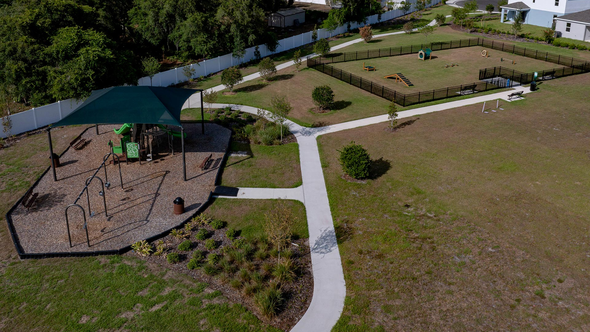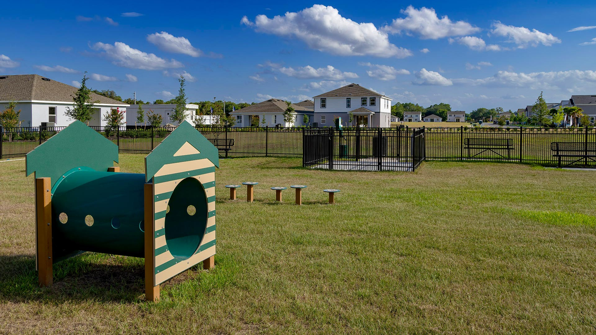 Trinity Place is Trinity Family Builders' new construction community in St. Cloud, positioned off US-192 with direct access to the commute routes and recreation described above. The community is built around a resort-style pool with cabana, a shaded covered playground, and a dog park — amenities designed for regular use in a Florida climate rather than as checkboxes on a marketing sheet.